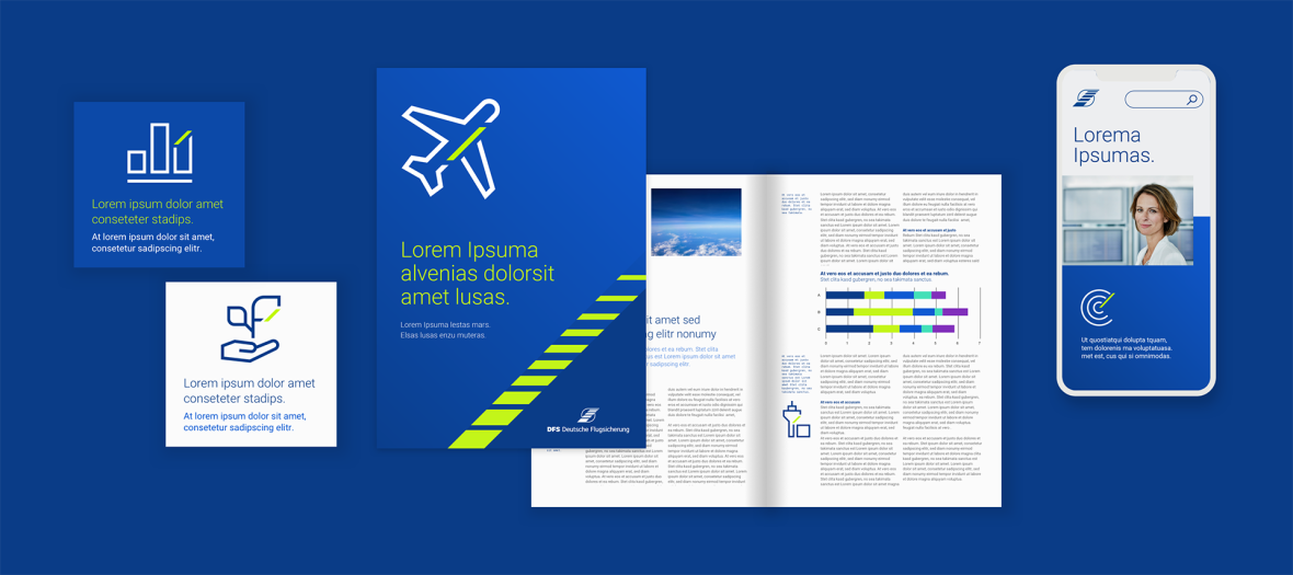 Icons sind grafische Symbole, die ein schnelles Erfassen von Informationen ermöglichen. Insbesondere auf digitalen Benutzeroberflächen schaffen sie Orientierung und tragen neben Logo, Farbe und Schrift zum markentypischen Auftritt der DFS bei.