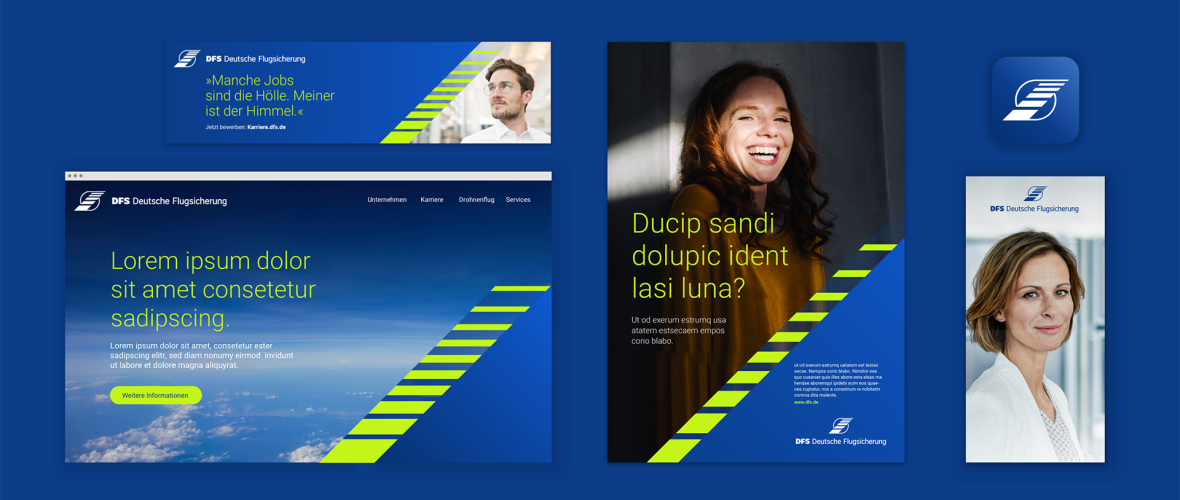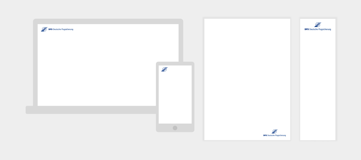 Das DFS-Logo ist das zentrale Element in der visuellen Kommunikation unseres Unternehmens. Es lässt sich, abhängig vom Medium, flexibel einsetzen und kennzeichnet die DFS klar und über alle Anwendungen hinweg als Absender.