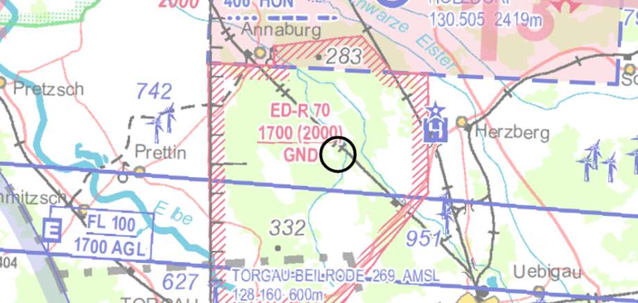 Gebiet mit Flugbeschränkungen „ED-R Annaburger Heide“ vom 24. November 2025 23:00 Uhr UTC bis zum 18. März 2026 23:00 Uhr UTC.