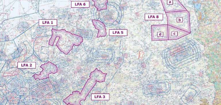 Bitte beachten Sie die Informationen zu den sieben in Deutschland eingerichtete Tieffluggebiete der Bundeswehr (LFA, Low Flying Area): NfL 2025-1-3686