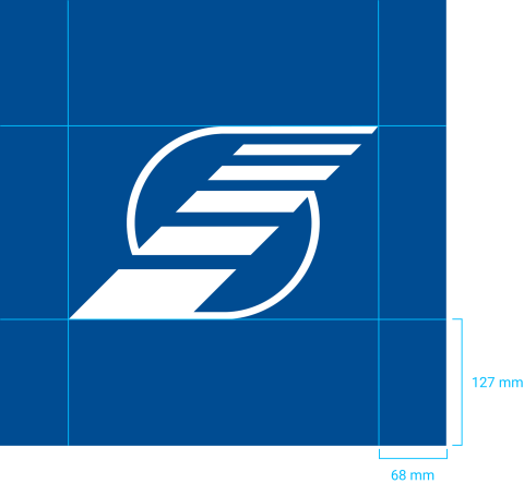 Damit die DFS-Logos im korrekten Verhältnis auf den Stelen platziert werden können, weicht das Raster von dem 6-pt-Standard-Raster ab. Die Logos werden zentriert auf der Kachel platziert.